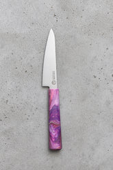 Our classic handmade paring knife with waste plastic handle is a great all rounder in the kitchen perfect for prepping fruit, vegetables or trimming meat and poultry, the perfect gift for any foodie.