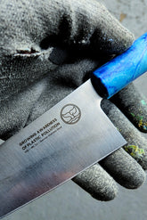 Our classic handmade chef's knife with waste plastic handle is a great all rounder in the kitchen perfect for prepping fruit, vegetables or trimming meat and poultry, the perfect gift for any foodie.