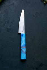 Our classic handmade paring knife with waste plastic handle is a great all rounder in the kitchen perfect for prepping fruit, vegetables or trimming meat and poultry, the perfect gift for any foodie.